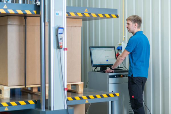 Während des Transports oder im Lager können Verpackungen und Ladeeinheiten gestapelt werden - sortenrein oder gemischt sowie im Verbund oder einzeln. Die Stauchdruckprüfung bildet die zu erwartenden Belastungen an Versandeinheiten oder leeren Verpackungen nach.